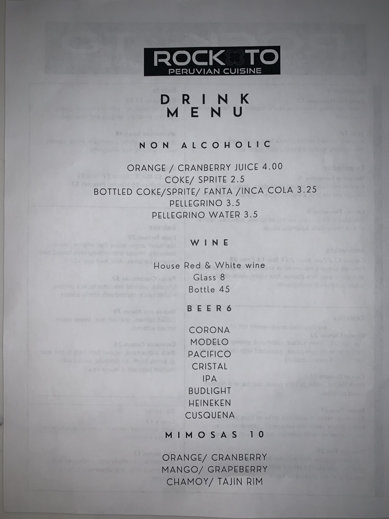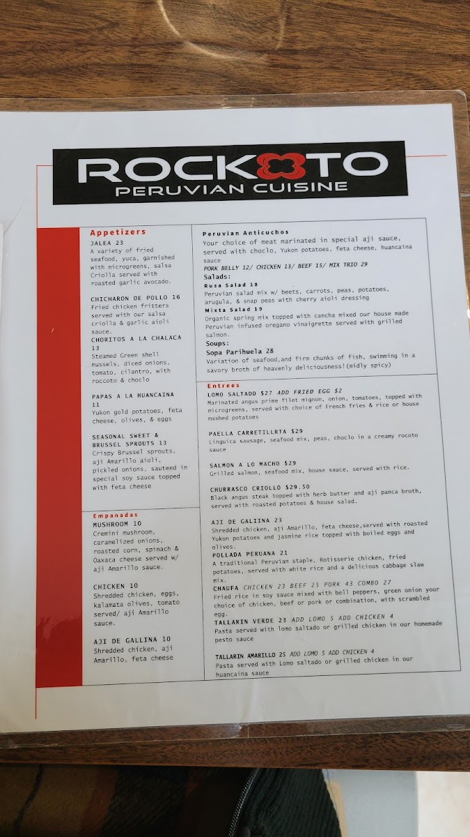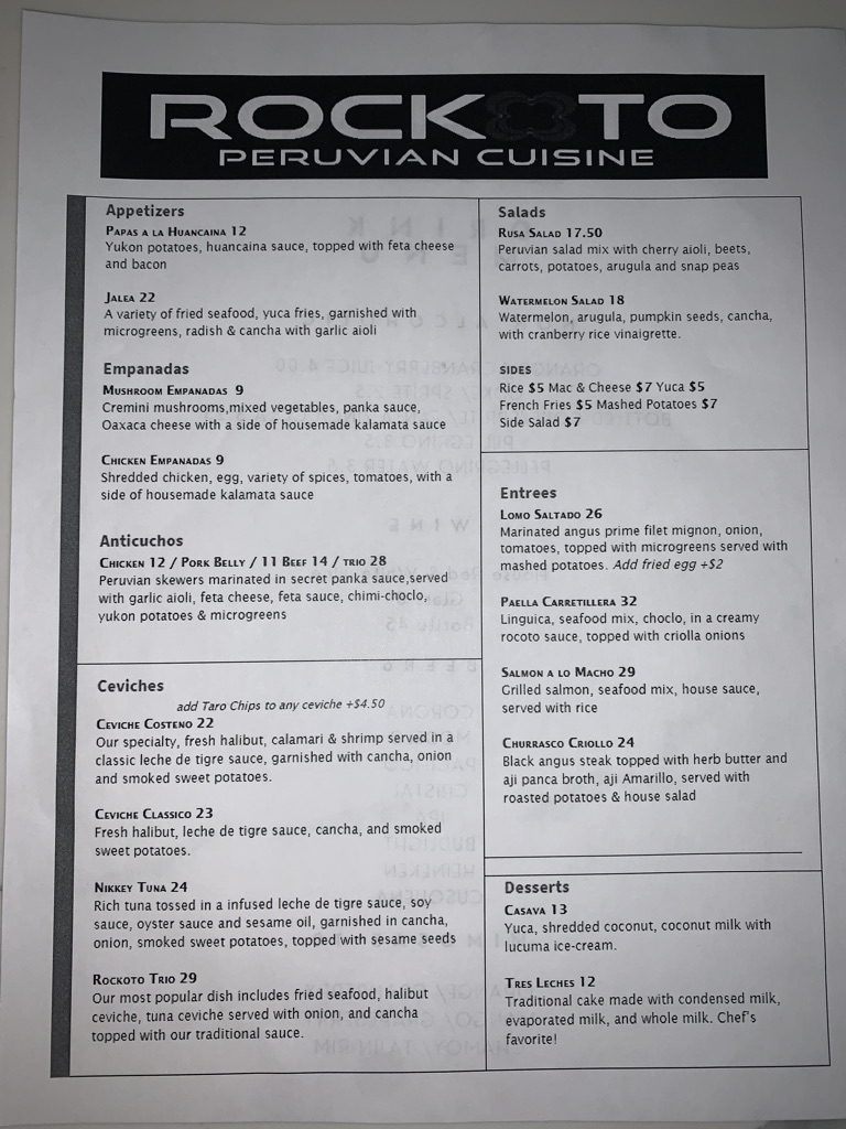 Rockoto Peruvian Cuisine Menu
